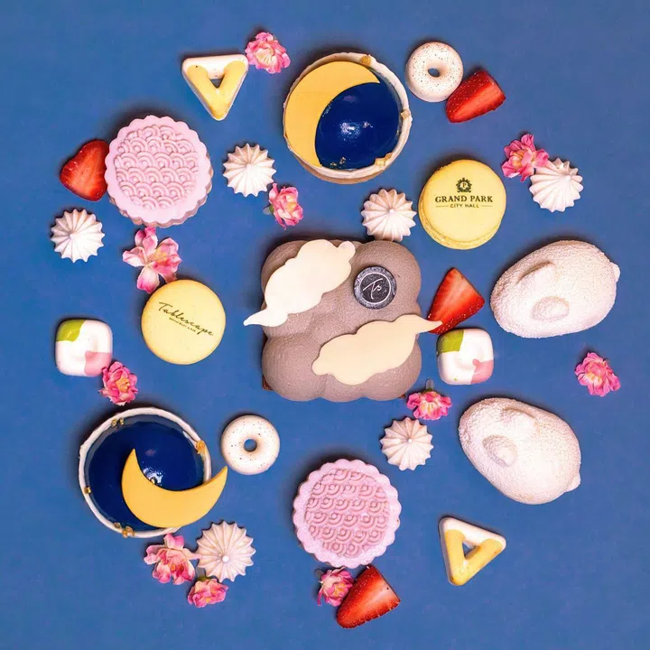 想要来点不一样的吗?新加坡君乐皇府酒店的现代欧式餐厅Tablescape推出颜值超高的“My Moonlit Garden”,精致的中秋节限定甜点包括以葡萄和优格作为馅料的Grape Mousse Mooncake;以可爱白兔造型呈献的猫山王榴莲口味Durian Mousse Bunny Bliss;结合乌龙茶慕斯、桃子果酱和巧克力饼干的Oolong Peach Cloud Delight;The Black Forest Tart Duo,顾名思义就是经典的黑巧克力和阿马雷纳樱桃组合,另外礼盒内还有不同口味的什锦巧克力及Crème Brûlée马卡龙。