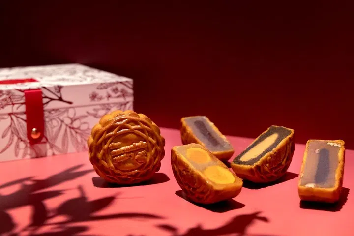 位于滨海湾金沙商场的高档粤菜卅二公馆今年首次在本地推出月饼礼盒。餐厅的创意口味月饼以自然水果和茶饮为主。Mango-Coconut 灵感来自传统粤式点心糯米糍,绵密的口感隐约散发清香;Yuzu-Umeshu顾名思义加入了日本梅酒以及柚子,清爽不腻口;爱茶之人可以试试Chrysanthemum-Red Date,以红枣为引带出菊花香;Match-Forest构思由餐馆人气甜品Bamboo Green Forest变奏而来,淡淡绿茶香迎来清脆的柚子香,为味蕾注入惊喜。