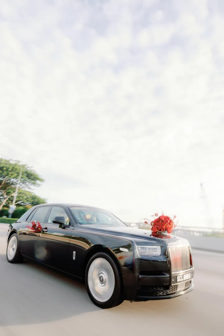 作为Rolls-Royce的忠实顾客,品牌特别安排Phantom车型作为婚车车队的一员,车队由两辆Rolls-Royce、两辆Maserati及一辆BMW组成。