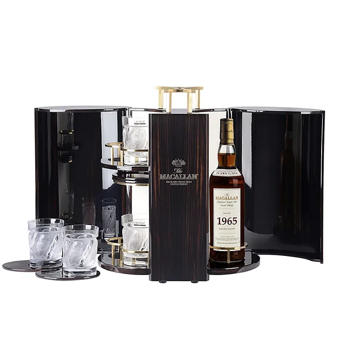其中,1965年份的麦卡伦珍稀特别意义非凡,正值新加坡独立之年,恰逢该国刚庆祝60周年纪念。1965年不仅稀有,还见证了多项影响现代生活的重大创新:日本新干线的开通、休斯顿天顶体育馆的建成,以及人造草坪、软性隐形眼镜和光盘的发明。此款酒装于由伦敦室内设计师Kamini Ezralow设计的定制酒柜中,套装附有四只拉利克水晶酒杯和四个实心乌木杯垫,极尽奢华,彰显历史传承。World of Wines and Spirits (WOWS) 独家发售,仅此一套。