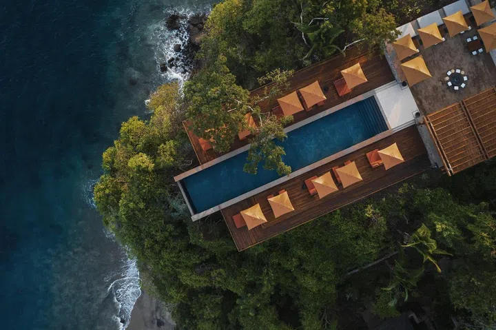 位于墨西哥的One & Only Mandarina坐落在太平洋海岸的悬崖边上,由著名设计师Rick Joy主导设计,共设105间独立套房和别墅。酒店坐拥壮阔绝美的海景、白沙滩和悬崖等自然景观,套房和别墅大多建在山坡之上或离地约12米的树冠上,被郁郁葱葱的热带雨林包围。酒店附设4家餐厅和酒吧,其中The Treetop是与自然连结的可持续餐厅,食物均采用可持续原料制作,同时推行“食物零浪费”计划。美好假日一天结束前,这里也是观赏黄金日落的最佳地点。
