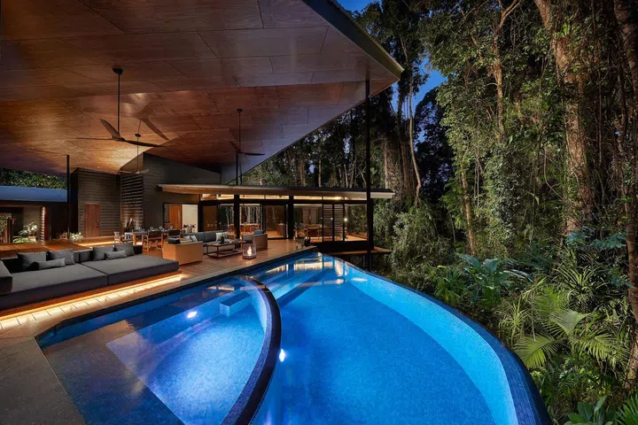 戴恩树国家公园(Daintree National Park)位于昆士兰北部,拥有古老的蕨类植物、翠绿藤蔓、动辄几十米高的千年树冠,电影《阿凡达》的画面灵感便是源于此。栖身于国家公园中的生态旅馆Silky Oaks Lodge是澳大利亚精品酒店系列(Luxury Lodges of Australia)的成员之一,依陡峭山势而建,有50间搭在树林中的树屋,37间散落于浓密丛林中,13间坐落于莫斯曼河面上。客厅及浴室采用全开放式设计,让住客享受名符其实的“森林浴”。酒店房间也具备五星级的生态标准,采用可更新或可再生的建材,并加入节能设计理念。入住期间,跟随当地原住民领队带路,探索充满生机的绿色雨林,沉浸于宛如世外桃源的原始气息。