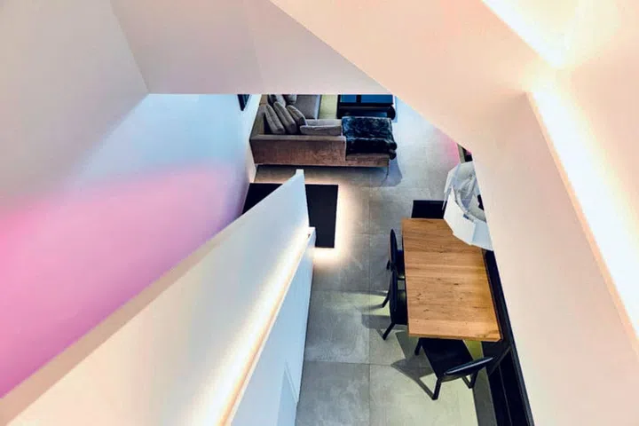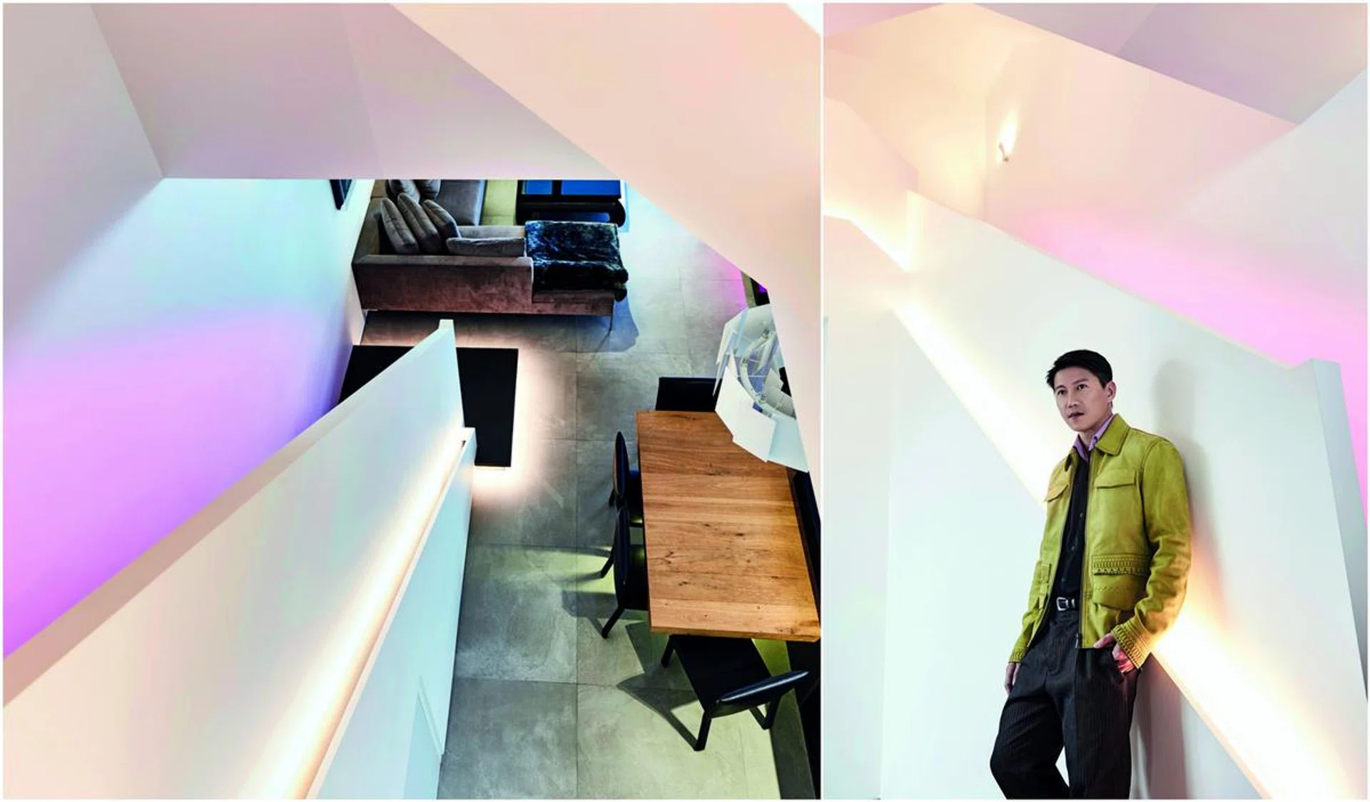 他的设计房子时也贴心考虑到夫妻的作息,把婚姻相处之道融入生活。“两个人一起生活很不容易,细节很重要。”三楼是夫妻俩的私领域,他的浴室分别备有两个马桶、两个花洒、两个洗手盘,“两个人在一起还是要有各自的空间才会舒服。”