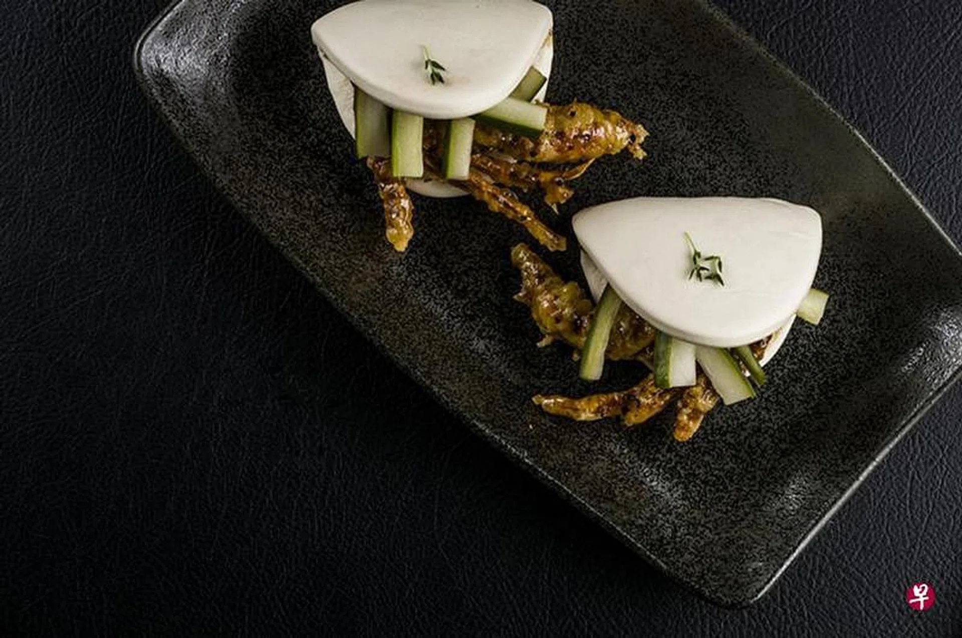 主厨贾斯汀(Justin Hammond,35岁)说,他从原本的扣肉包取得灵感,加入自己的创意,像用酥脆的食材搭配蔬菜和卤肉,制造多重口感,最大挑战在如何做出馒头的轻盈感。