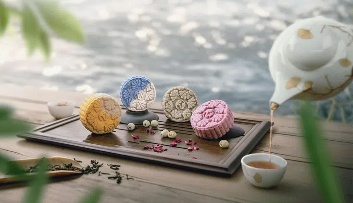 圣淘沙名胜世界行政甜点主厨江定佳与风水廷总厨李国光今年联手呈现以低糖、养生食材为主的月饼。4款全新口味的冰皮月饼有:西洋参绿茶冰皮月饼(Green Tea with American Ginseng Snow Skin Mooncake)、水仙乌龙冰皮月饼(Shui Xian Oolong with Osmanthus and Longan Snow Skin Mooncake)、有机燕麦蝶豆花冰皮月饼(Butterfly Pea Flower with Organic Cereal Snow Skin Mooncake)以及柚子樱花冰皮月饼(Cherry Blossom with Yuzu Snow Skin Mooncake)。吃月饼当然得配上好茶,冰皮月饼礼盒里也附上牡丹茶、陈年水仙茶、普洱茶和黄金桂花四款不同中国茶,让你与不同口味月饼一同享用。另外,酒店旗下餐馆table65和Syun春日本料理的名厨也联手打造了2款独特的烘皮月饼。黑松露黄金竹炭月饼(Golden Bamboo Charcoal with Australian Black Truffle)选用精品澳洲黑松露和黄金竹炭制作,威士忌柚子皮樱花月饼(Whisky Soaked Yuzu Peel with Sakura)则融入了以威士忌浸泡的柚子皮和樱花,带来特别味蕾体验。