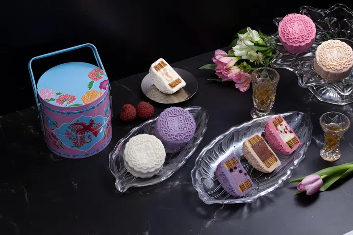 新加坡富丽敦酒店旗下中餐馆玉楼今年推出三款冰皮新品:冰皮红莓北海道牛奶(Raspberry Hokkaido Milk Snow Skin)、冰皮玫瑰开心果绿茶(Rose Green Tea with Pistachio Snow Skin Mooncakes)及冰皮桂花枸杞(Osmanthus with Wolfberry Snow Skin),新鲜组合彰显花、浆果和茶的风味。传统烘皮月饼今年则增添了玫瑰香椰(Rose Coconut Baked Mooncakes)和蔓越莓乌龙茶(Oolong Tea with Dried Cranberries Baked Mooncakes)两种口味。