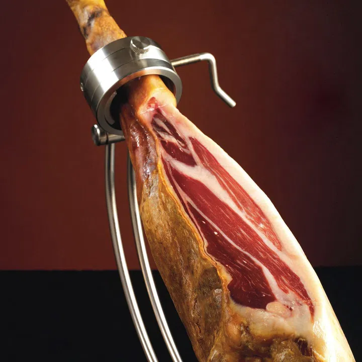 采用来自西班牙或葡萄牙的伊比利亚黑猪制作而成,因为含有丰富的皮下脂肪,经得起长时间的腌制,这类猪种能腌制出更浓郁复杂的风味。最高等级的伊比利亚火腿是Bellota,取自以食用橡木果长大的黑猪制作,其肉质带着独特的橡木果香,浓郁芬芳。