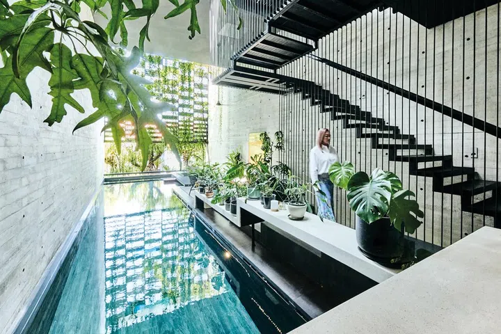 本地建筑事务所Formwerkz Architects联合创办人与室内设计事务所Studio iF 创办人兼首席设计师陈思璇(Gwen Tan)的私宅打破传统建筑结构。一般有地房产,泳池大多在一楼或顶楼,陈思璇将泳池“搬” 到二楼,打造休闲度假风。