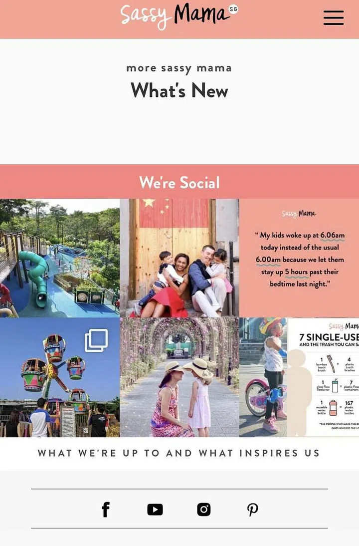 时尚的年轻妈妈或许对SassyMama这个网络社群不会感到陌生。这个2011年在香港成立的网络社群面向时尚的年轻妈妈们,为她们带来各种相关的新闻和产品信息。非常喜欢孩子的姚音配(40岁)在2013年将网站带来新加坡,成为SassyMama.sg的合伙创办人。