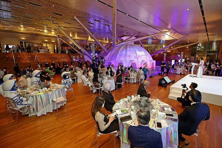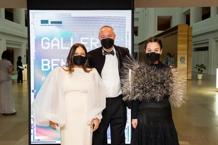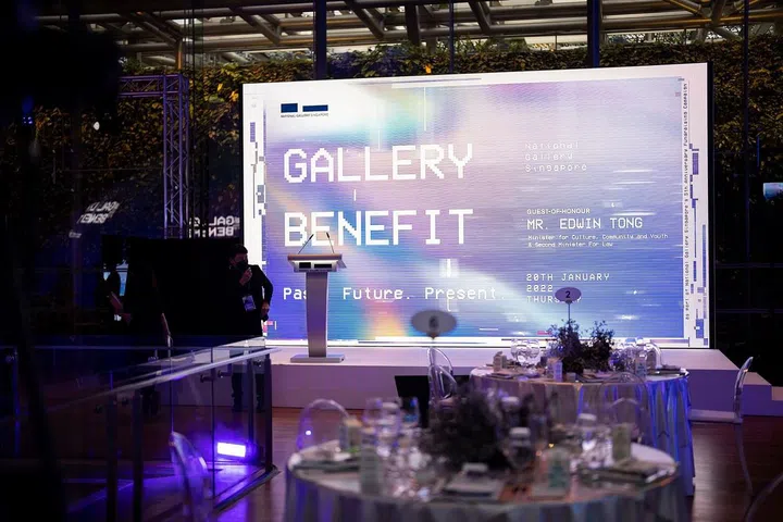 一年一度的Gallery Benefit 是新加坡国家美术馆(National Gallery Singapore)的主要筹款活动。晚宴让艺术家、收藏家、艺术爱好者能够共聚一堂,除了艺术鉴赏,也能够借此机会深度交流。这也是新加坡国家美术馆庆祝开馆五周年的庆生活动之一。 盛宴在博物馆的Supreme Court Terrace 举行,今年的主题为”过去。