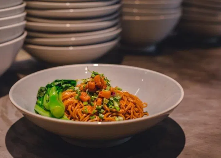 Blue Lotus Noodle Bar有一道猪油渣面,就猪油渣搭配几根青菜,看似朴素味道却非常丰富。执行董事吴志雄说,创办Blue Lotus Noodle Bar是想营造有趣的中餐饮食主题概念,让顾客享有好食物、用餐气氛和服务。