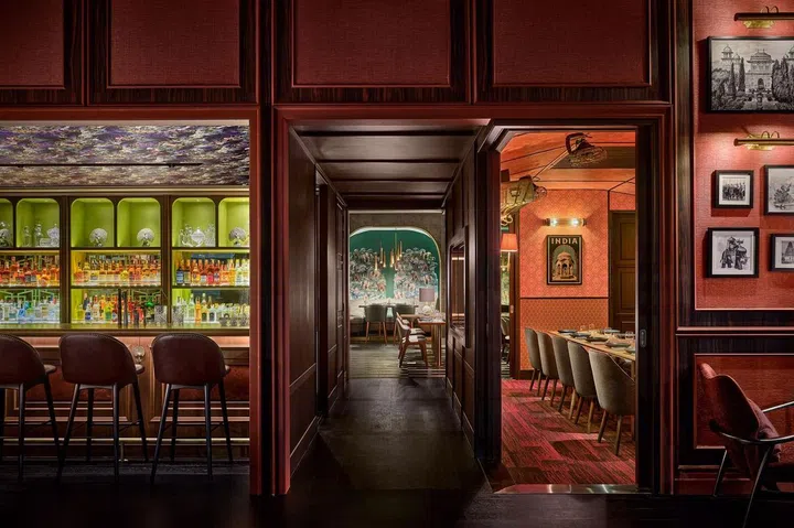 疫情期间不能出国旅行,不如通过美食游历世界?新印度餐馆Firangi Superstar分为4个不同特色的主题空间,分别为Officers Club、Old Railway Room、Elephant Palace和Jungle Lodge,每一处都让人仿佛穿越到电影场景里。主厨Chef Thiru采用现代手法重新诠释他印象中的经典印度风味,因此这里的料理虽然保留了印度菜的精华与风味,却也不会让人感觉味道过于重而浓烈,一般不常接触印度菜的人,也能轻易接受。试吃时印象深刻的是从经典美式鸡肉松饼汲取灵感的Prata Waffle。顾名思义,就是将印度煎饼做成松饼模样,搭配选用咖喱叶和大蒜制成的马德拉斯式炸鸡,以及奶油鸡肉酱和粗糖浆。其他亮点佳肴还包括This Is Not Aloo Gobi,也就是Chef Thiru版本的印度素食料理马铃薯花椰菜、Chutney & Raita、Sothi Fresh、Cumin Carrots with Dhal Makhani等。