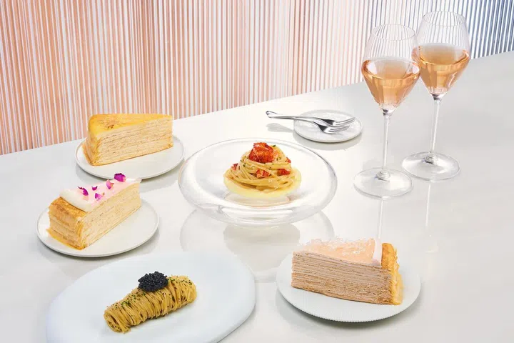 来自纽约的著名甜点品牌Lady M 于本地开设首家Lady M Champagne Bar,供应精致甜点与香槟。除了招牌法式千层蛋糕以及各式糕点,最值得一提的是独家推出的Champagne Mille Crepes,这是Lady M在2019年佳节推出的季节限定口味,当时广受欢迎。晶莹剔透的香槟果冻蕴含Rosé Première Cuvée Extra Brut Bruno Paillard香槟,与草莓口味的千层馅堪称完美组合。这里也提供开胃菜及主食选择,包括Chilled Caviar Angel Hair、Creamy Lobster Fettucine等意大利面。既然是“香槟酒吧”,怎能少得了主角香槟?可选择单点一系列特选香槟,或享用Champagne Cake Set蛋糕与香槟套餐组合。