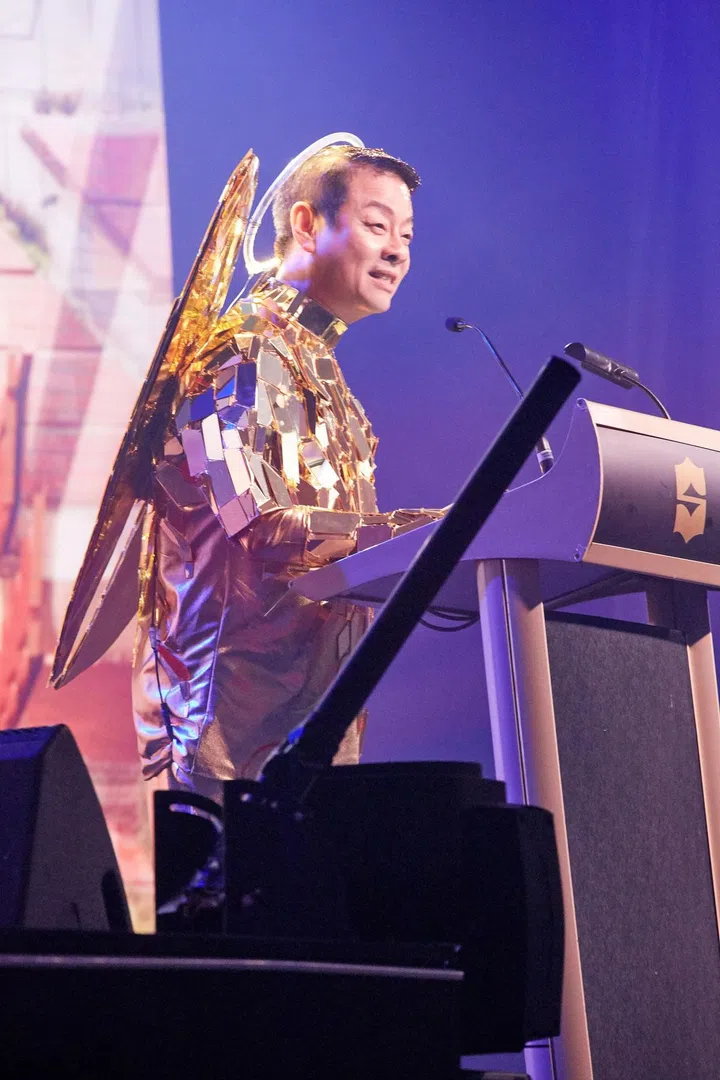 今年的晚会主题是打破传统的“Out of this World”。整个会场布置得像是步入超越时空的另一空间。城中名媛都配合当晚主题打扮成,以外星人到太空人造型出席晚宴。当晚,野米剧团的创意总监Ivan Heng 也宣布,剧团即将在11个月后在即将竣工的Funan 购物商场内有一个全新的野米剧团剧院,让人期待。 当晚出席的客人包括,Susanna Kang, Paige Parker, Dr Loh May Han等人。