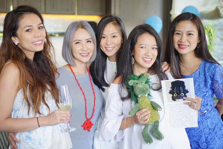 Elaine Kim即将于10月初迎来第三个宝贝儿子Nate,临产前一个星期,名媛好友们特别为她举办一场"妈咪灵浴“派对。在Capella酒店Chef's Table餐厅举办的派对以蓝白色为主题,一众好友纷纷向Elaine及宝宝献上祝福与爱,每个人都亲手在蛋糕上为宝宝写下美好祝福。朋友们还特别为宝宝制作了大礼篮,里面放着很有意义的礼物,承载着满满的爱心与期许,温馨有爱的场面与氛围让人感动。