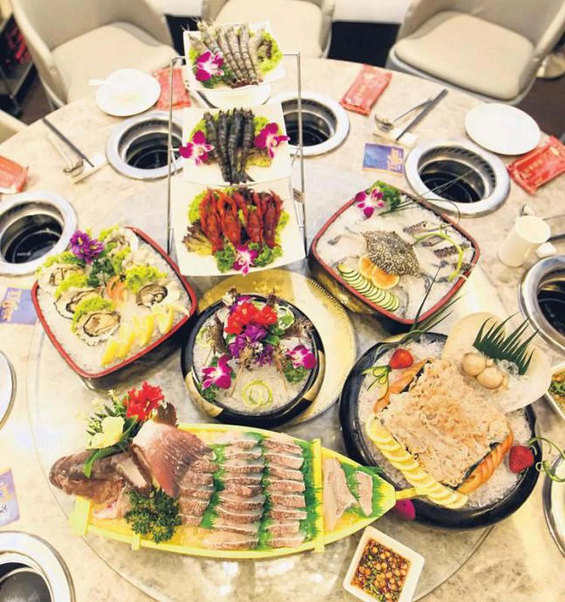 餐馆以提供顶级菜品为卖点,肉类有日本A5级宫崎牛肉、日本鹿儿岛五花猪肉和西班牙黑毛猪肉,海鲜则有生蚝、鲍鱼、龙虾、竹节虾、象牙蚌等。特别推荐秘制生鱼片切得薄如蝉翼,口感却脆嫩弹牙,滋味无穷。除非客人有特殊要求,餐馆会按先海鲜、后肉类的顺序,一道一道上菜,以确保菜品新鲜,涮烫时间把握好。蔬菜最后才煮,以免蔬菜破坏汤味。