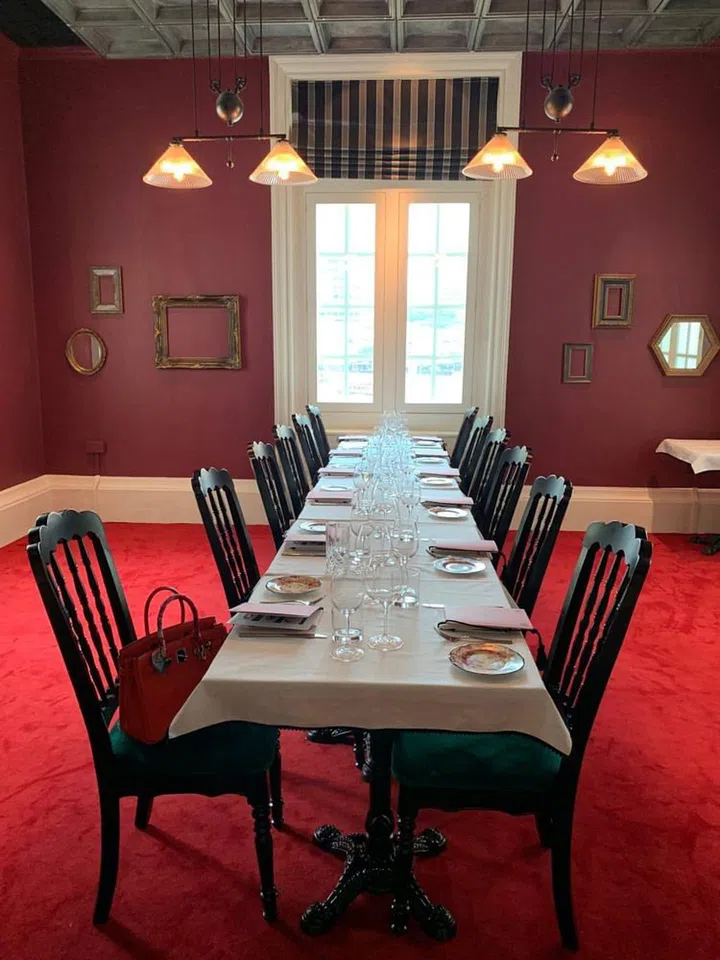据知,餐厅的桌椅也经过特别挑选,椅子坐垫更是特别选择用墨绿色绒布包裹,连红色地毯也是根据原店设计,特别铺上的。