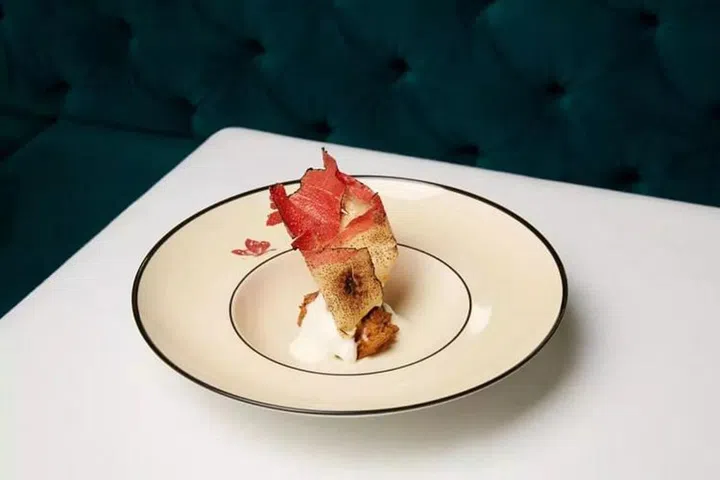 俗话说,入乡随俗。这次Gucci Osteria 班师本地,在餐点上也作出不少调整,看起来跟原餐厅一样的餐店,巧妙地以本地食菜替代,或者加入巧思,在呈现方式上作出小小的改变,比如:The Crunchy Part of the Lasagna 上的粟米脆饼从原本代表意大利的绿白红色,换成了新加坡国旗上的红白两色。