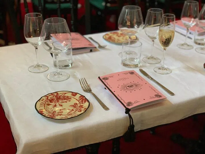 细节是王道,Gucci Osteria da Massimo Bottura亮点除了米其林美食,当然也包括Gucci的餐具。团队特别从意大利运来Gucci Décor collection的印花瓷盘,其中包括Gucci Osteria专属的红色瓷盘。
