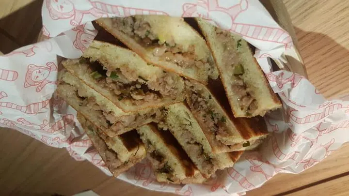 从来没有想过在酒吧可以吃到这么好吃的肉饼包,这让我想起了以前在小贩摊位上经常吃到的味道,而且并不会感觉多油,肉与面的比例恰到好处,被切好放在一个篮子里,方便食用。