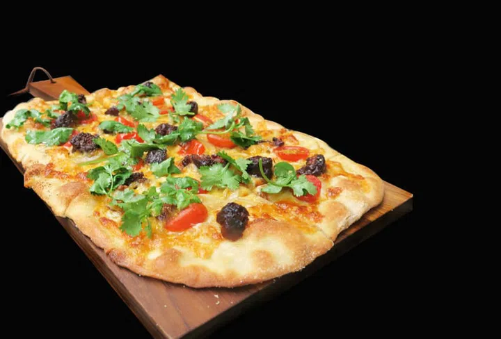 膶肠脆皮薄匹萨又是道用中国传统食材制作的西方料理。而且你会发现膶肠搭配奶酪的味道还是不错的。