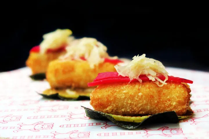 不同于传统的苏格兰香肠蛋,这里用的则是中国传统的皮蛋,包在用虾与黑猪肉的碎肉炸成的裹皮中,口味与原本的完全不同。不知道你会不会喜欢,但是敢于尝鲜的人一定要试一下。
