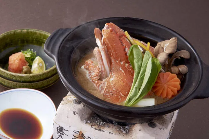 除此之外,餐厅还有特别的蟹火锅,北海道的帝王蟹搭配烤鱼骨,酱油与味醂为火锅增味。还有豆腐、胡萝卜和卷心菜等等蔬菜,还会提供纤薄的琥珀鱼切片,客人能够尽情享受这样的涮涮锅。