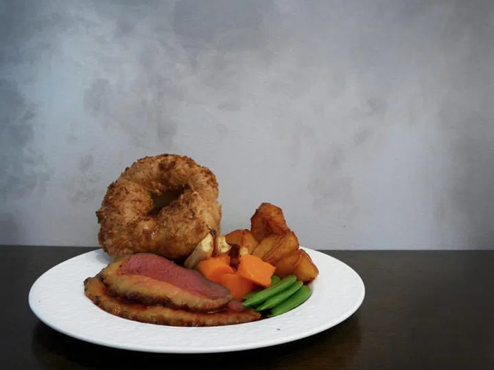 既然叫“烘烤早午餐”,重点自然是烤肉,搭配可口酥脆的土豆、金黄蓬松的约克郡布丁,还有季节性蔬菜和肉汤。