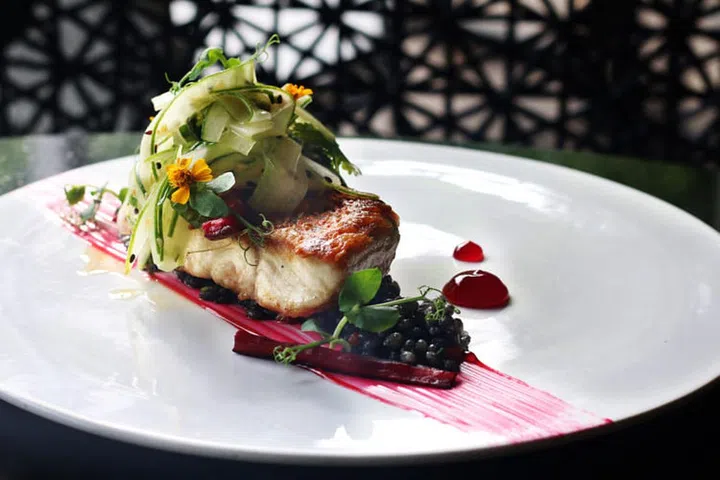 以本地传统美食为灵感,餐厅推出了班兰与香蕉蛋奶沙司生姜饼干(Pandan and banana with ginger biscuit),配上用香蕉与鲜花作为配料的甘蔗冰糕,感受自然的新鲜感。另外在全新的午餐套餐菜单中,参巴空心菜烩饭(Sambal kangkong risotto)泡在椰浆咖喱中,脆脆的空心菜叶与本地鹌鹑胸脯肉还有酥脆的烤香葱西番莲鸡腿。午餐搭配有机葡萄酒,是最美不过的选择。