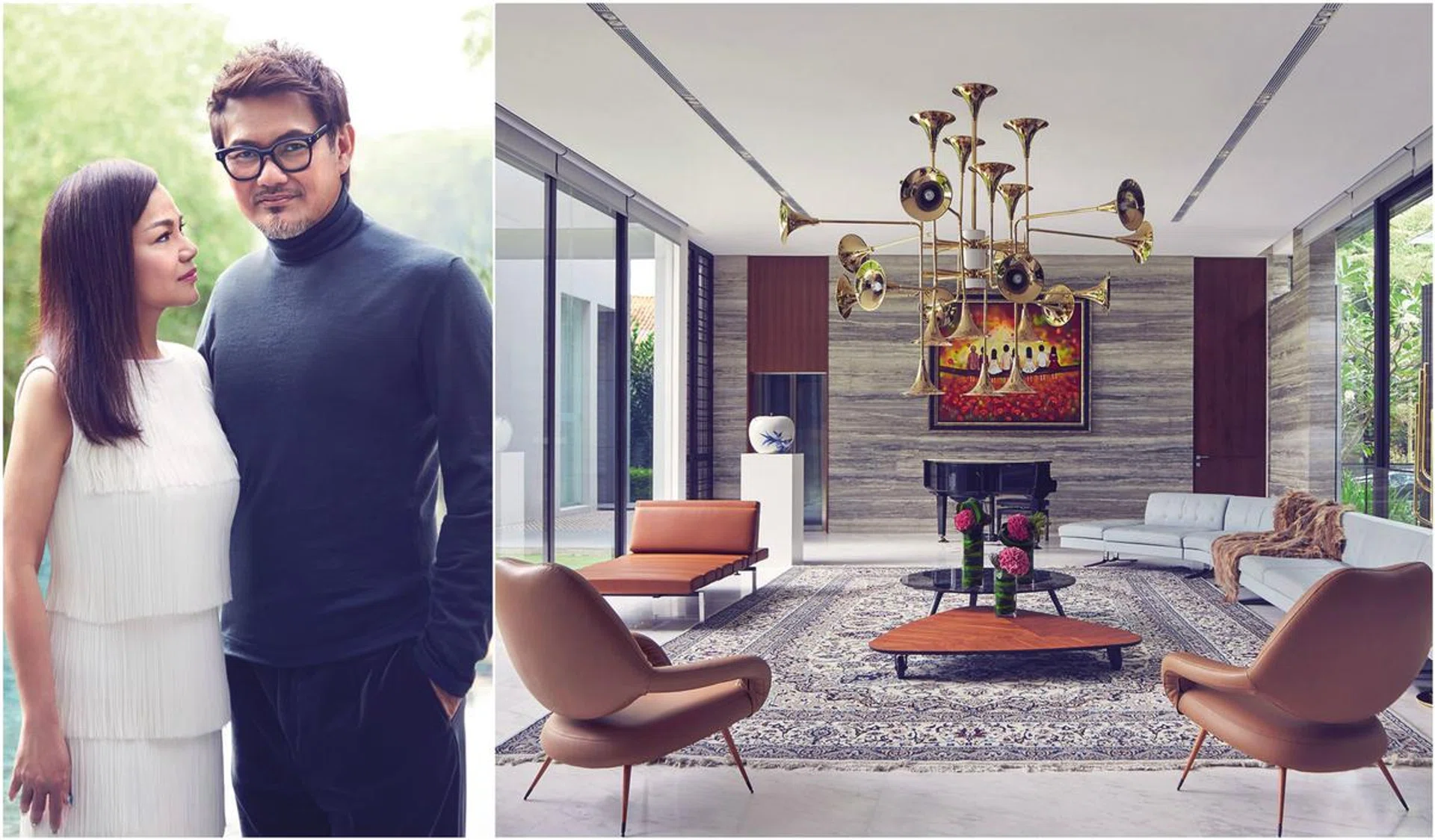 除了烹饪,夫妻也喜爱收集艺术品。用餐区的开放式展示柜摆放小巧艺术品,不少是夫妻俩在慈善活动买回来的,其中包括美国普普艺术画家Peter Max的天使雕像。通往二楼的旋转楼梯间有一株灯树,璀璨夺目。