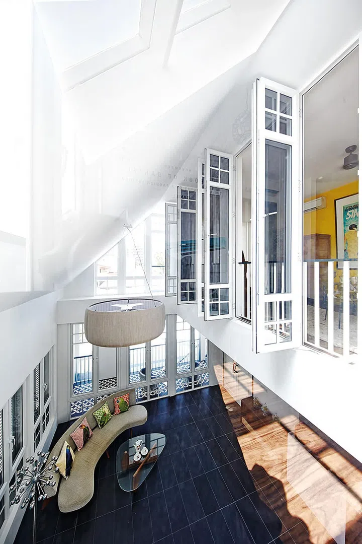 这座东西设计元素相结合的房子,设有许多开放式空间,而其高高的天花板更有助引入大量的自然采光和通风;这些都是屋主所喜爱的设计元素。他补充说道:“我也很喜欢那设在户外的梯级。它不但为房子注入强有力的设计特色,也为客厅入口增添戏剧性。”