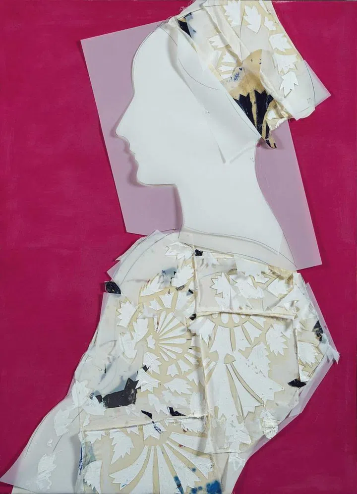 现代艺术大师Manolo Valdes; 精致小巧的布上拼贴作品《Perfil I》