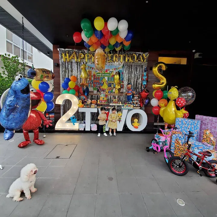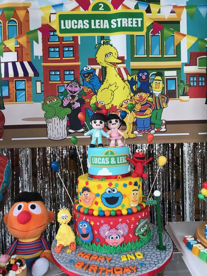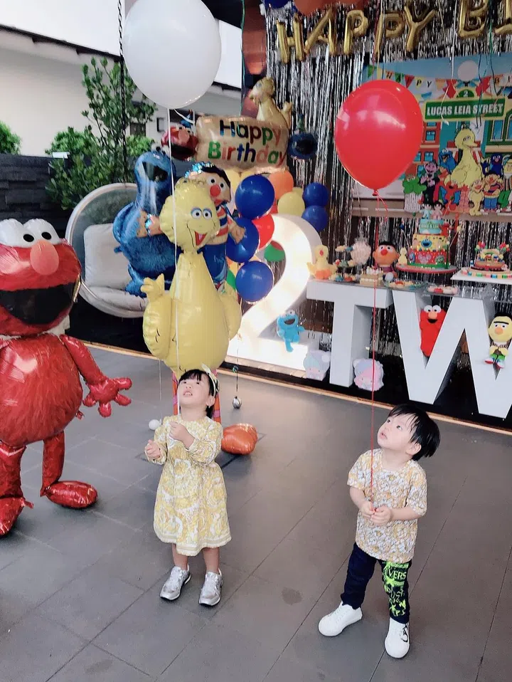 城中名媛冯爱容(Chermaine Pang)与丈夫Terence Siew在家中为两岁大的双胞胎儿女Lucas及Leia庆生,派对以双胞胎最近迷上的芝麻街为主题,现场布满芝麻街玩偶、人物气球、糕点等。为了给宝贝们送上独特惊喜,夫妻俩除了还向Abite Atellier定制芝麻街造型三层蛋糕,还设计了生日横幅,上面写着“卢卡斯莱娅街”。Chermaine透露,Lucas与Leia 自从去年圣诞节在环球影城观看埃尔莫的表演后便爱上芝麻街的角色,几乎每天都在家里追看芝麻街节目。夫妻俩依照阻断措施松绑第二阶段的规定,仅邀请家人参加生日聚会。