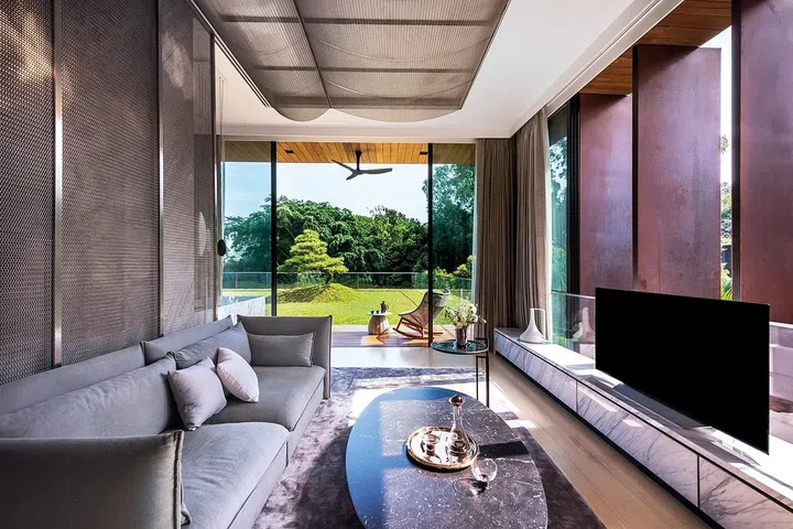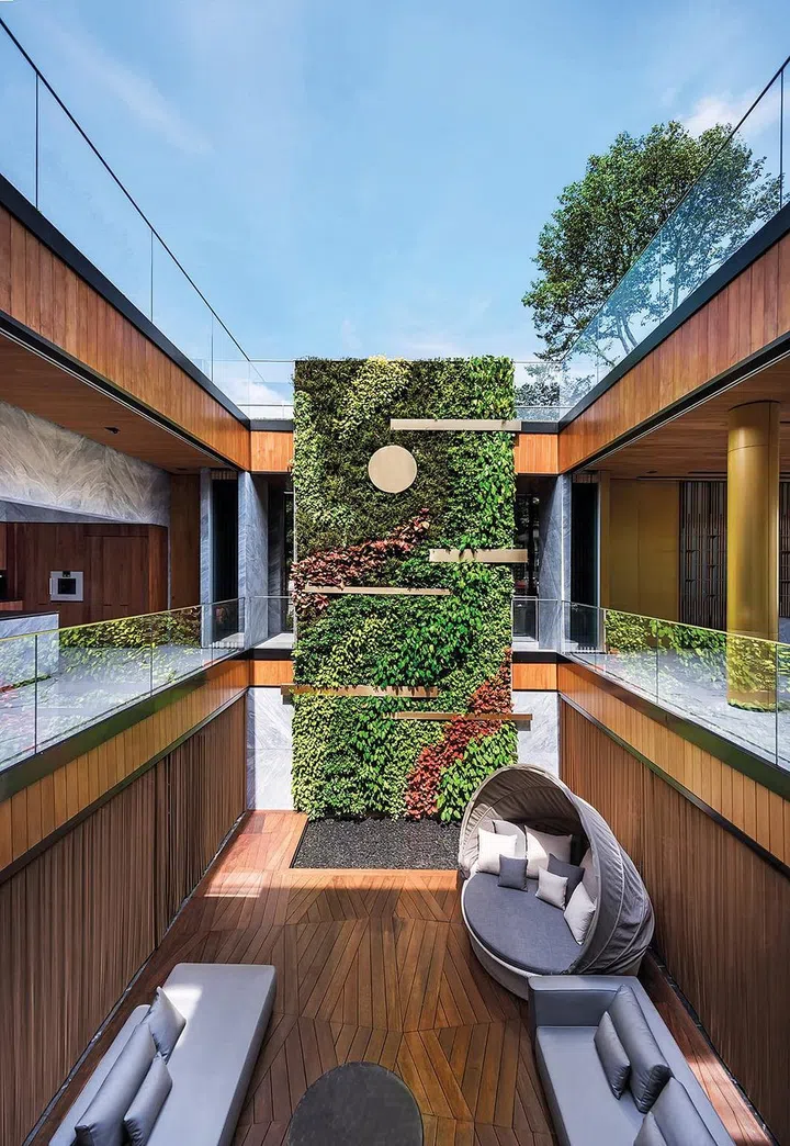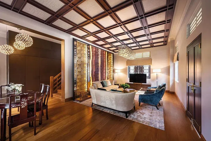 宅邸由TA.LE Architects 首席设计师郑燕玲(Tay YanLing) 及Type0 Architecture 设计总监潘怡诚(Pan Yi Cheng)联手设计,实现林佑龙渴望四代同堂的心愿;以四合院的概念,把80年英式保留建筑(下称老屋)与附加的摩登建筑(下称新屋)巧妙结合。