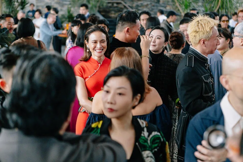 宾客们身着融合传统与现代的新中式服饰,尽显奢雅气息。