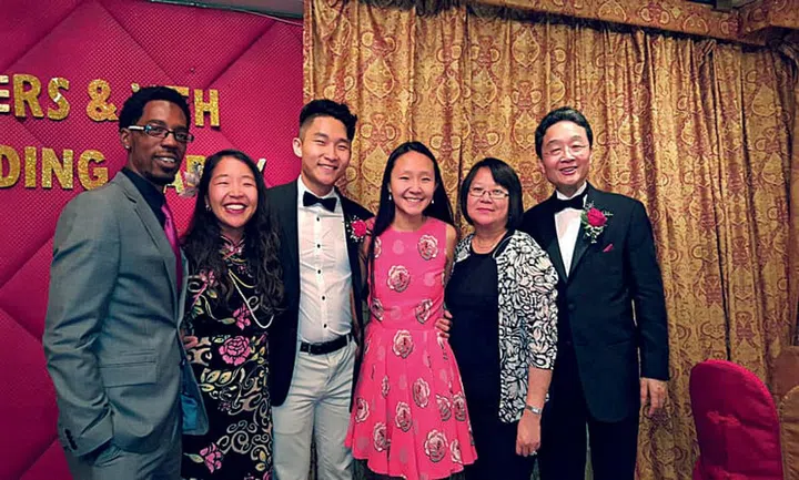 叶聪与妻儿及女婿的全家福照片。