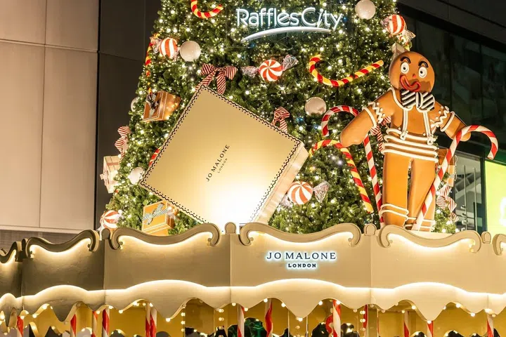 英国香氛时尚品牌Jo Malone London首度携手莱佛士城(Raffles City Singapore)打造精美独特的圣诞装置,为节日增添喜悦氛围。值得一的是,这座圣诞树的底部由旋转木马组成,更以节日标志性的姜饼人化为木马,同时装点着巨星糖果、条纹糖杖以及标志性的Jo Malone London礼盒,让人仿佛置身于梦幻童真的圣诞乐园。