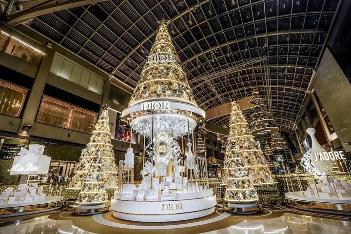 Dior Beauty在滨海湾金沙购物商城一楼(The Shoppes at Marina Bay Sands)打造了一座高达11米的圣诞树,精巧地融合了金色巴洛克风格和冬季白色。树梢上点缀着迪奥之星,向迪奥之屋的起源致以敬意,同时揭开了一幅充满寓意的Dior假日故事。