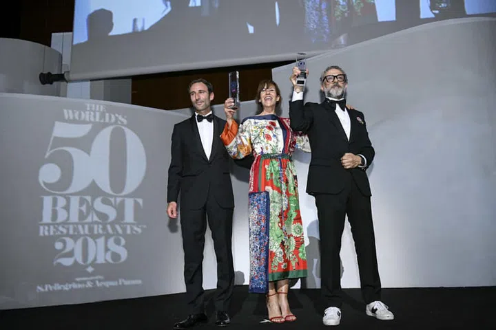 当地时间19日晚,2018年度“世界50最佳餐厅”(The World’s 50 Best Restaurants 2018)颁奖典礼在西班牙毕尔巴鄂(Bilbao)举行,位于意大利摩德纳(Modena)由主厨Massimo Bottura掌勺的Osteria Francescana在去年错失第一位之后,今年重获“全球最佳餐厅”。该餐厅从2010年开始就一直在“世界50最佳餐厅”的前五位,2016年荣获“全球最佳餐厅”,2017年被纽约的Eleven Madison Park抢去,今年Osteria Francescana重回第一位,而Eleven Madison Park却掉到了第四。西班牙的El Celler de Can Roca获得第二,第三是法国的Mirazur。亚洲最佳餐厅Gaggan获得第五位,这是亚洲餐厅首次挺进前五。