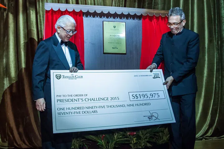 适逢Tanglin Club成立150周年,俱乐部特别在11月23日举办盛大的慈善晚宴,70位会员与贵宾出席晚宴,总统陈庆炎也受邀到场以示庆贺。晚宴共筹得391,950万善款,打破俱乐部150年来筹款记录。其中,半数将用于“总统挑战”慈善活动,其余将全部捐献给Kidney Dialysis Foundation与Food from the Heart等慈善机构。