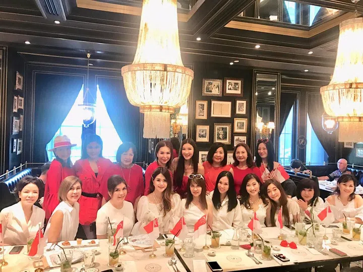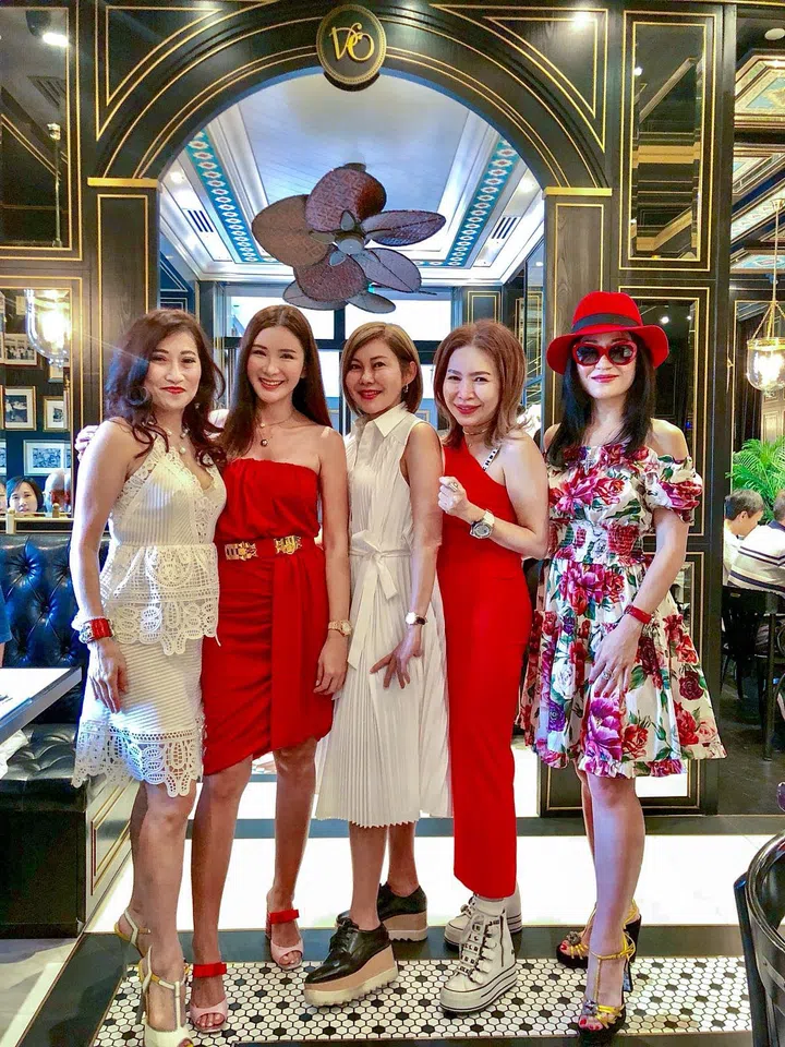 本地名媛刘巧莲(Tan Khar Nai) 向来喜欢呼朋唤友,这些年来了不少别具意义的活动。最近,她创立了Cupcakes and Stars Club俱乐部,邀请本地商业精英和名媛们参加。她说,Cupcakes 比喻会员们之间的感情,而Stars则是表示会员们的向上的期望。身为会长以及创办人,刘巧莲希望可以借此俱乐部拉近会员们的关系,除了在本地聚会外,也计划一起到国外旅行,共赏异国风情。俱乐部日前举办了首次聚会,这次的主题是Post National Day,出席的名媛包括Jamie Chua, Belinda Chua, Chermaine Pang 等都穿上了红白主题的衣裳出席餐会。