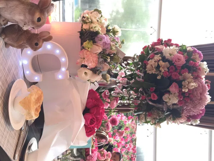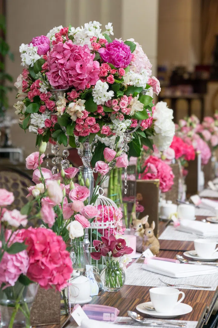 Socialite Chermaine Pang marks birthday with pretty pink flowers and a royal English tea spread / 英国皇家花园下午茶生日派对