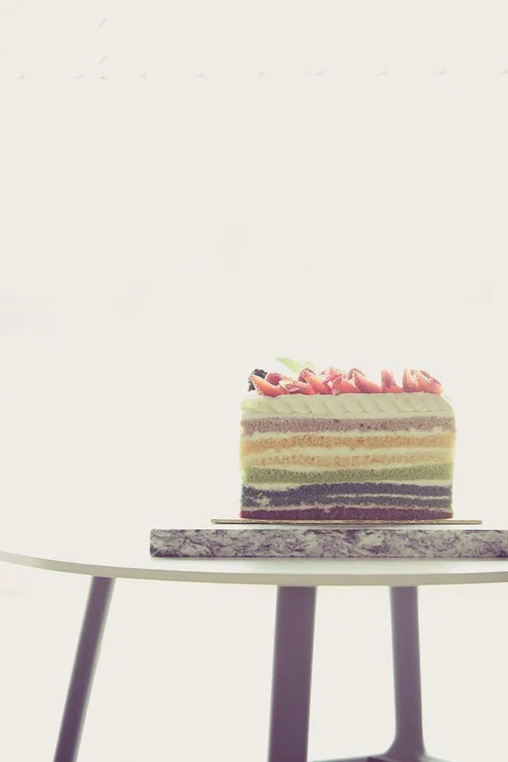 这次之所以选择做蛋糕,她说:“因为甜食不仅让人开心,五颜六色的蛋糕从视觉上就能让人心情愉悦。工作繁忙或压力大的时候,吃一块甜点,起到减压作用,是一种情绪疗法。我喜欢色彩,彩虹蛋糕的七种色彩意味着丰富多彩的人生,要用积极快乐的心情面对生活。”除了卖相,食材的选择她也格外用心。做给朋友和家人吃要将安全健康作为考量,她不会用食用色素,而是从蔬菜水果中提取天然色素来制作七彩颜色,选择色彩相近的食材来煮水或搅拌,经过多次尝试,才能调和理想的颜色。虽然费时费力,天然染色让蛋糕更具湿度,口感自然也比外面售卖的要好,她认为再麻烦也值得。