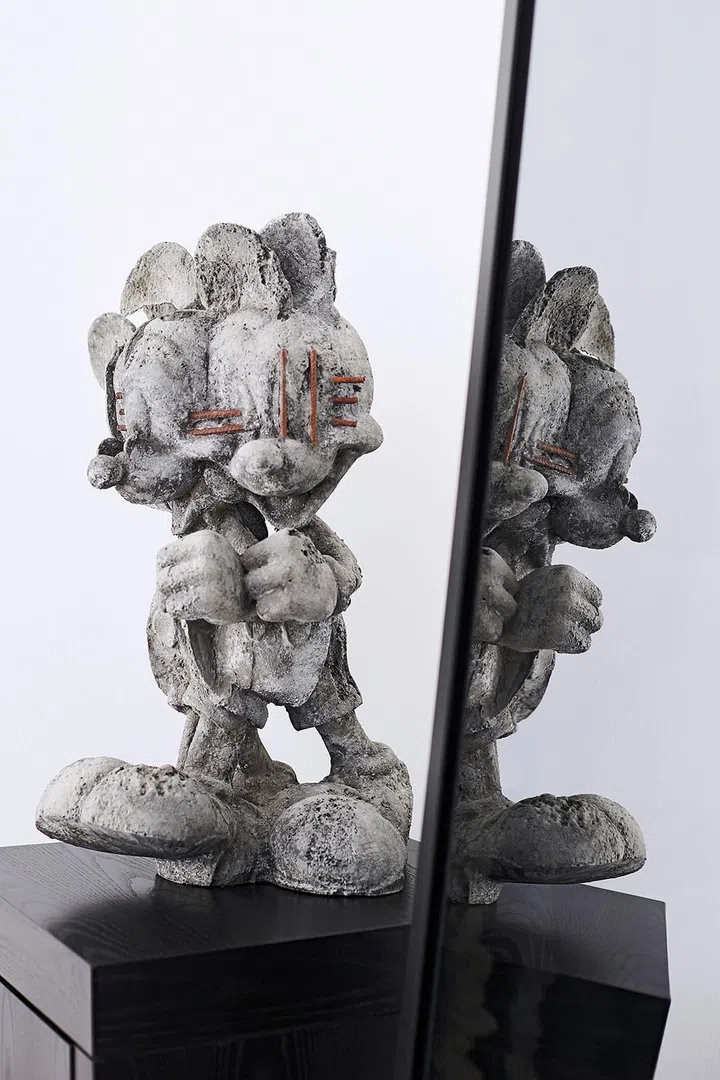 “那年我没有到现场看秀,但是很喜欢这张长椅,所以买了下来;原本打算放置在阳台,但是它的体积比较大,没想到玄关的位子却恰恰好摆下它。”长椅成为最佳展示区,姚婧在长椅摆上了西班牙艺术家Javier Calleja的作品Pot Pop Top Flower Vase, Pink Eyes以及Virgil Abloh所设计的油漆桶包包,这是他离世前最后的系列之一,弥足珍贵。