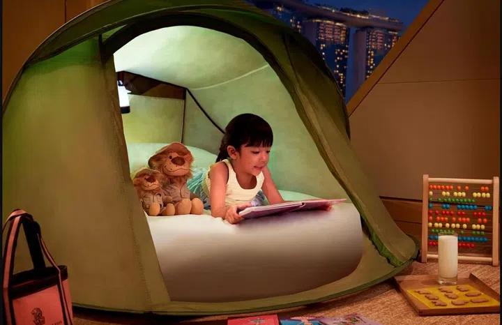 如果孩子对露营感兴趣,可以考虑预订The Ritz-Carlton Millenia Singapore的亲子套房,为他们在市中心打造一场难忘的glamping体验。Ritz Kids Night Safari Adventures配套旨在培养孩子的户外精神,满足他们的好奇心、创造力和冒险精神。房间内配备了睡眠帐篷,以及睡前小点、夜灯、酒店狮子吉祥物玩偶和活动册子,让小朋友可以在酒店内展开探索之旅。完成指定的狮子印章收集后,他们还能领取免费冰淇淋作为奖励。该配套适用于Elevated Kallang、Deluxe Marina、Premier Suite、Club Premier Suite、One-Bedroom Millenia Suite等房型,每天包含两名成人和两名12岁以下的儿童的早餐。酒店官网提供优惠码,可在预订时使用。