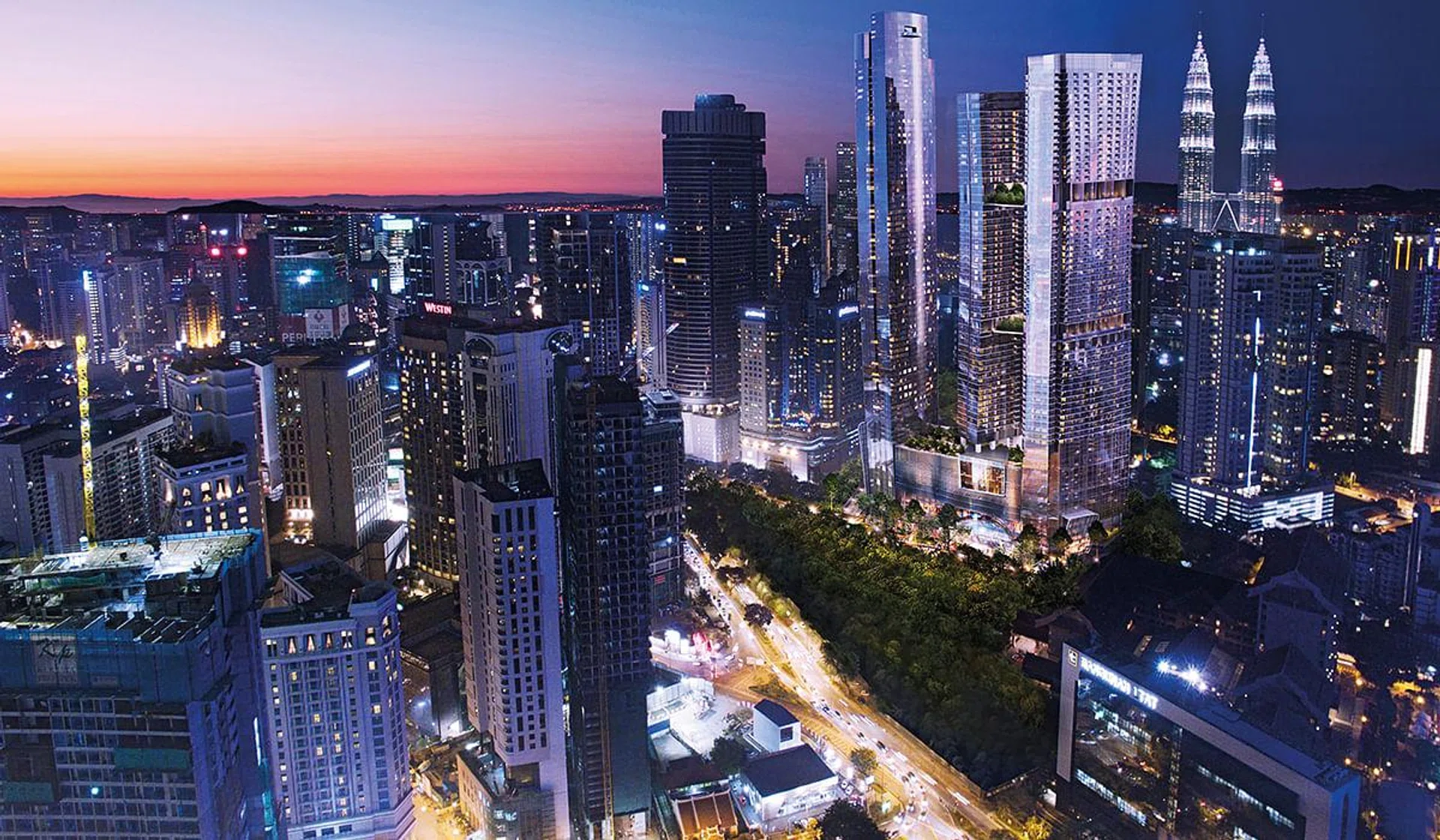 由TROP设计公司负责的地景设计,在空中打造绿色自然风貌。26楼的水景休闲区,设计灵感来自马来西亚热带雨林,并拥有一个25米标准泳池。44楼的绿色空间以峇厘岛梯田为灵感,可在空中花园中跑步或放眼无敌景观。