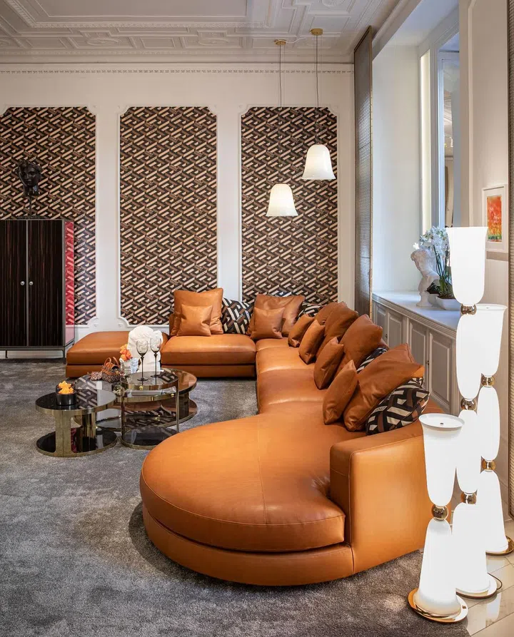 在2021年意大利米兰国际家具展览会上亮相的范思哲家居系列(Versace Home)由品牌创意总监Donatella Versace与著名设计建筑师Roberto Palomba及Ludovica Serafini携手打造,将时尚、奢华与生活方式完美结合,让人沉浸于Versace的美学世界。