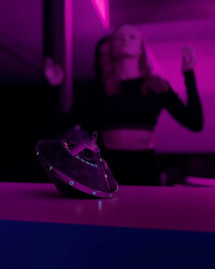 该音箱外型独树一格,由品牌女装设计总监Nicolas Ghesquiere亲自设计,向Toupie手袋构型汲取灵感,金属和皮革结合品牌经典标识,为家居空间注入艺术气息。音乐开启之时,绚彩灯光随韵律起舞,令 Monogram 花卉绽放数码魅力。