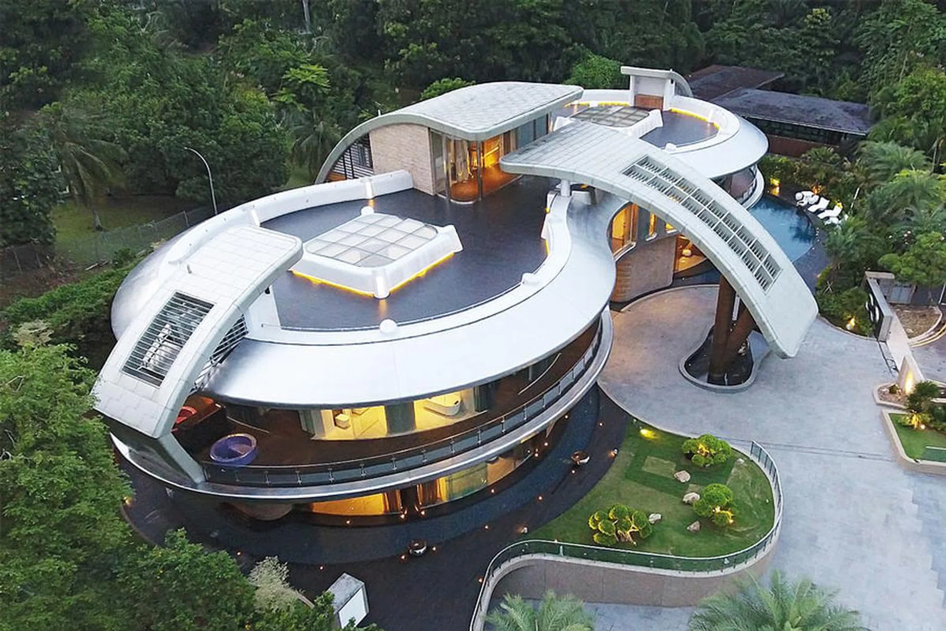 在意大利文里,Otto的意思是八。这座名为Villa Otto的豪华别墅从高空俯视像个8字,一望而知是配合华人“发”的谐音。概念虽传统,设计却不落俗套,别墅的造型像一艘来自外星的太空船,营造一个充满未来感的时空。