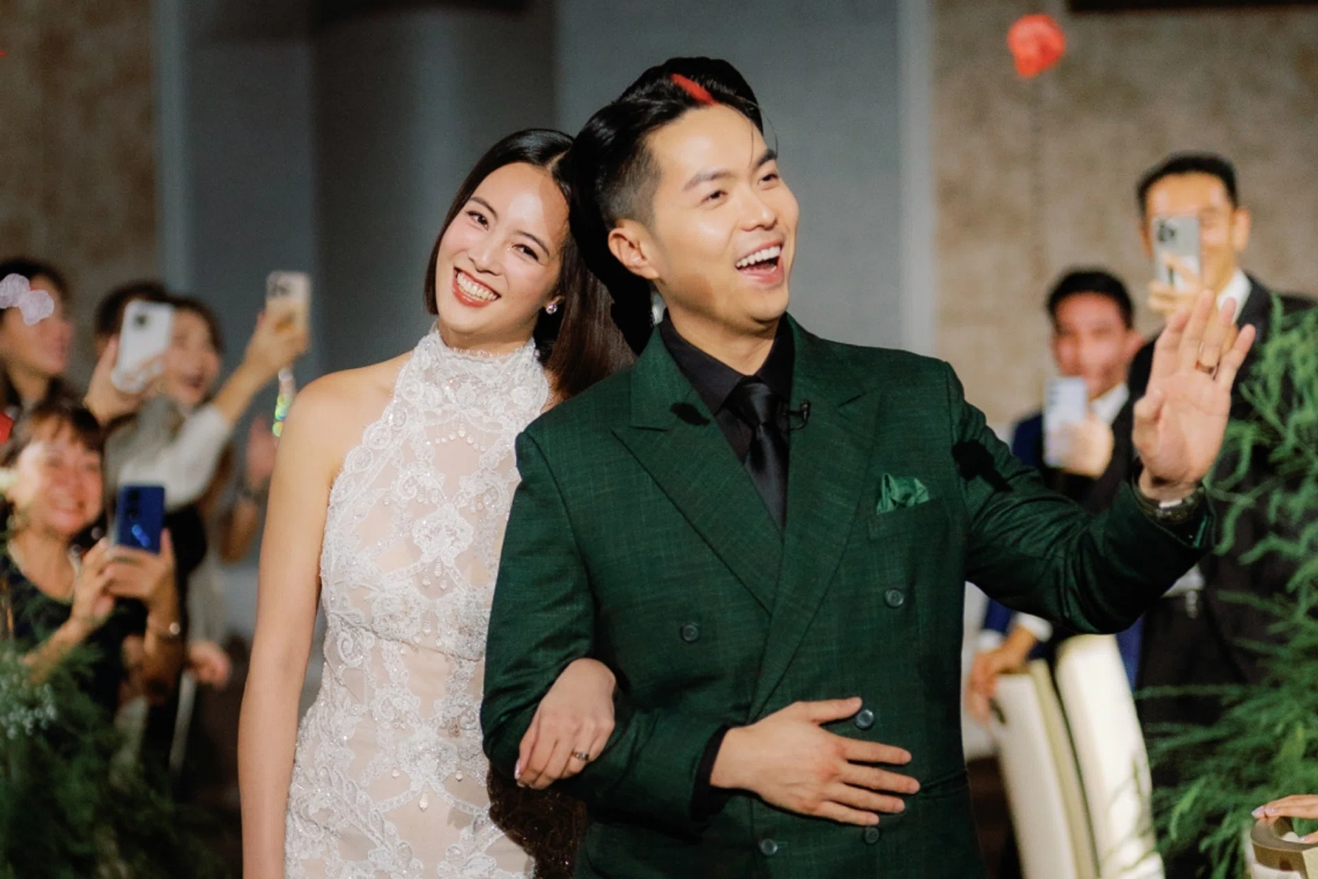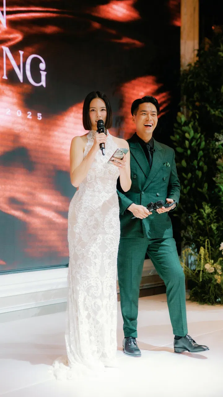 生活郑颖甜嫁伍思翰 李铭顺、范文芳、林慧玲等明星好友共同见证2025年6月15日父亲节,新加坡资深艺人洪慧芳和郑各评的掌上明珠郑颖 (Tay Ying) 与相恋四年的名厨伍思翰 (Wu Sihan) 举办婚礼。文 / Yu Xinyi / 16 Jun 2025Photo Courtesy of Antelope StudiosTay Ying, Weddings, wedding gownsShare this article婚礼位于乌节大酒店 (Orchard Hotel),宴请72桌,共约700多位宾客。李铭顺、范文芳夫妇、张奕恺、洪凌夫妇、林慧玲、陈罗密欧等圈内名人皆到场见证这一幸福瞬间,场面极为隆重。YES 933 DJ 张颖双与朱泽亮更是这场婚礼不可或缺的一部分,共同主持,为新人献上最真挚的祝福。三个月前,这对新人在社媒透露,早在2024年3月20日伍思翰就已向郑颖求婚。当时正值《巨无霸》剧集开拍前夕,伍思翰趁着女友拍摄时联合工作人员在影棚隔壁进行惊喜求婚计划。从求婚到婚礼现场,两人的幸福皆由婚戒品牌Le Caine Gems承载。在众多亲友的见证下,两人喜结连理。上午的接亲环节,郑颖身着Mira Zwillinger SS2025系列的“Jolli”婚纱,洁白碎花散落在纱裙上,深V开领的设计由一层薄纱遮盖,极其梦幻。新娘亲昵地挽着新郎的臂弯,尽显甜蜜。 Photo Courtesy of Antelope Studios选自本地婚纱店The Ivory Bridal代理品牌Nicole + Felicia FW24系列第26套造型,主婚纱上半身采用极简一字型抹胸设计,搭配紧凑纱花形成的蓬松下摆,行走时如漫步花海。Photo Courtesy of Antelope Studios在台上致辞时,郑颖一袭精美修身蕾丝礼裙。这条裙子同为The Ivory Bridal代理的品牌Berta之作,属“Eclipse”系列中“25-05”号作品。无袖高领搭配悉心设计的纹路,高雅中不失柔美。Photo Courtesy of Antelope Studios礼成后郑颖回顾:“饮胜 (Yumseng) 时,我特意环顾宴会厅,那些我们生命中最重要的人齐聚一堂为我们送上祝福,这让我很感动。这场婚礼有太多美好的瞬间,我真的很感谢所有促成这场婚礼的人,一切都完美的无可挑剔。”部分圈中好友也纷纷在各自的社媒账号上晒合影,共庆幸福时刻。Tay Ying, Weddings, wedding gownsShare this article